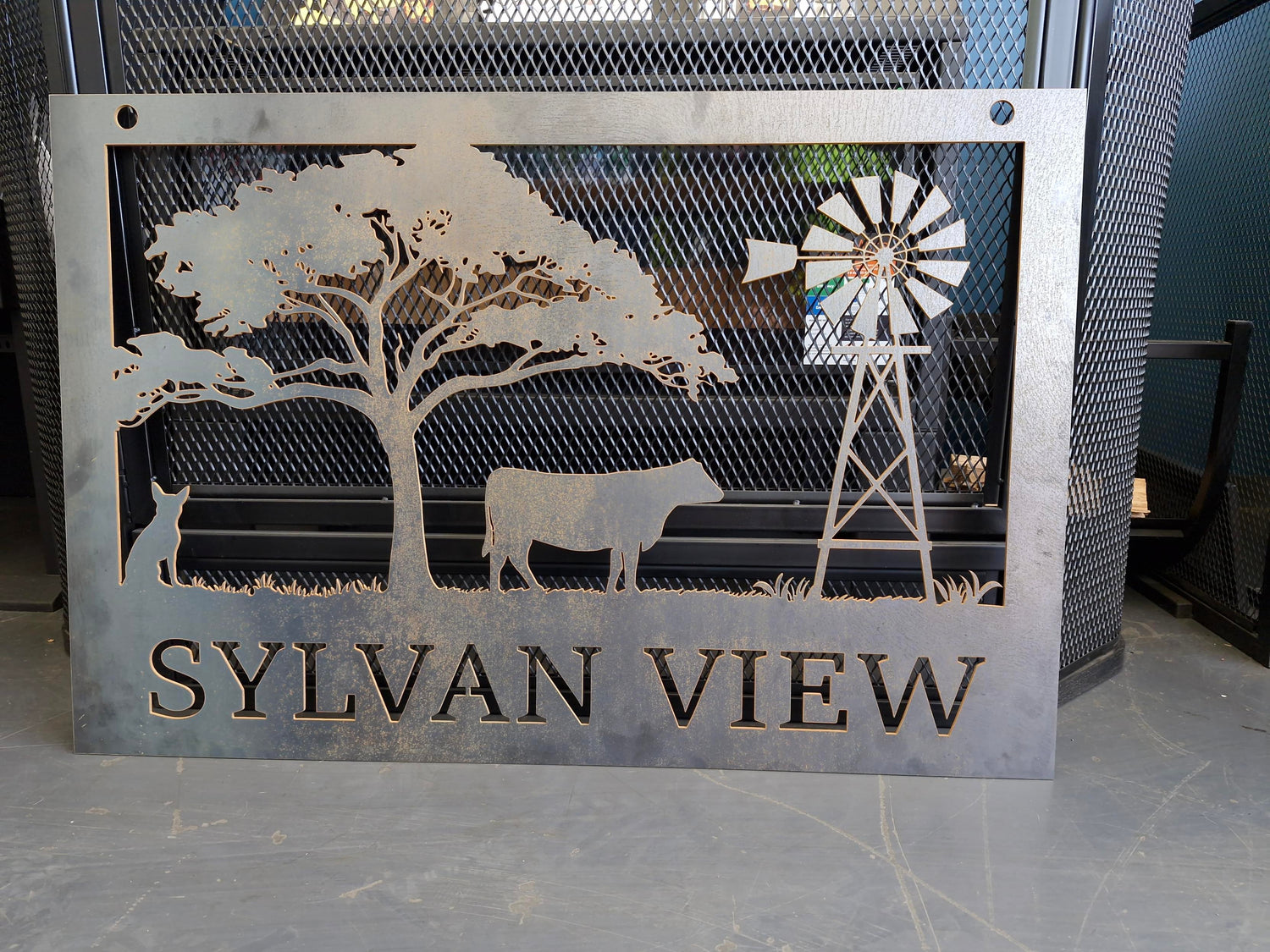 Our custom farm signs are crafted from durable steel and precision cut for a clean, detailed finish. Perfect for property entrances or sheds, each sign can feature your farm name, animals, trees, or rural scenes to capture the character of your property.