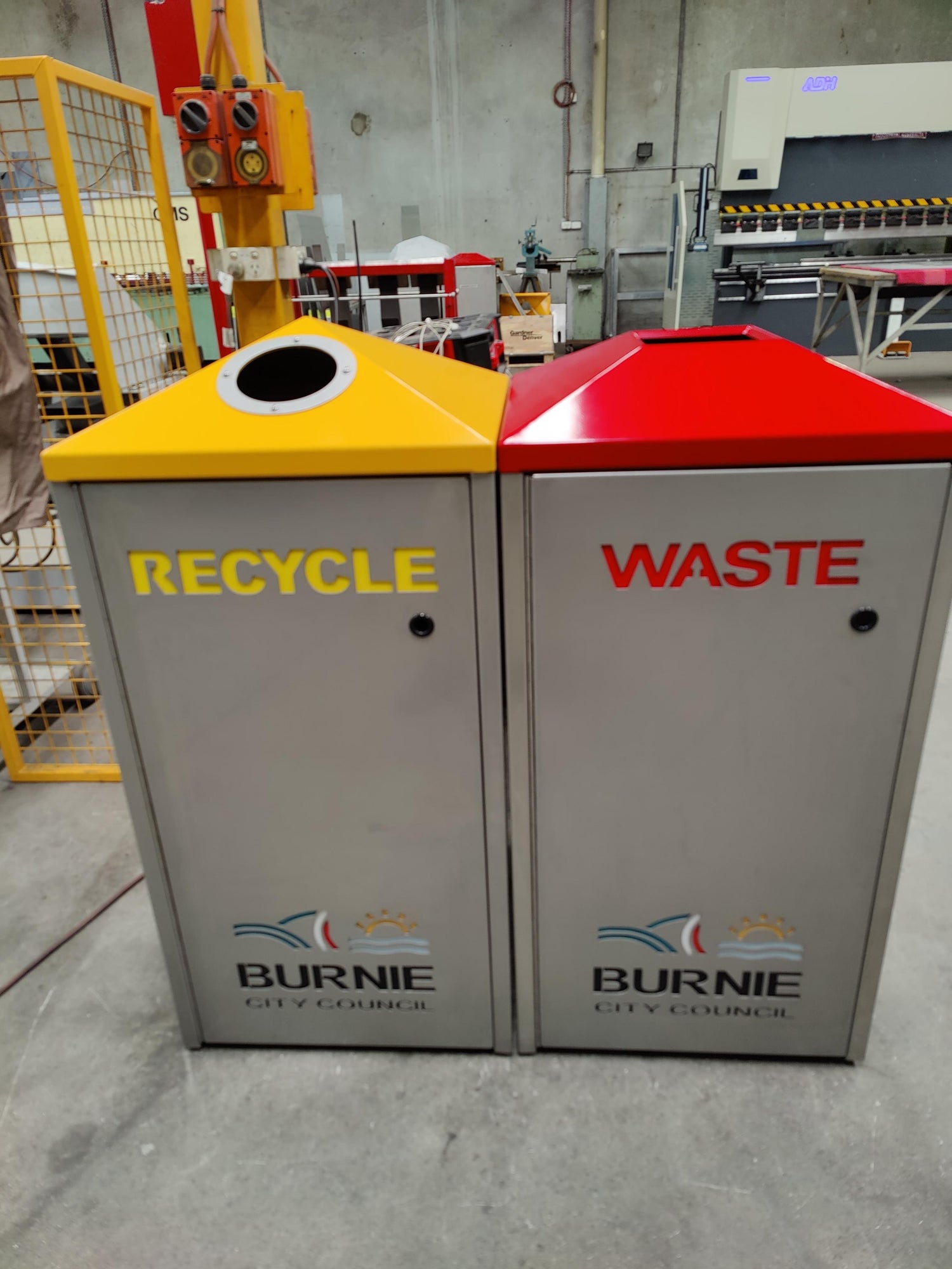 Each bin can be customised with powder-coated lids, waterjet cut lettering, or branded logos to suit your project or organisation’s needs.